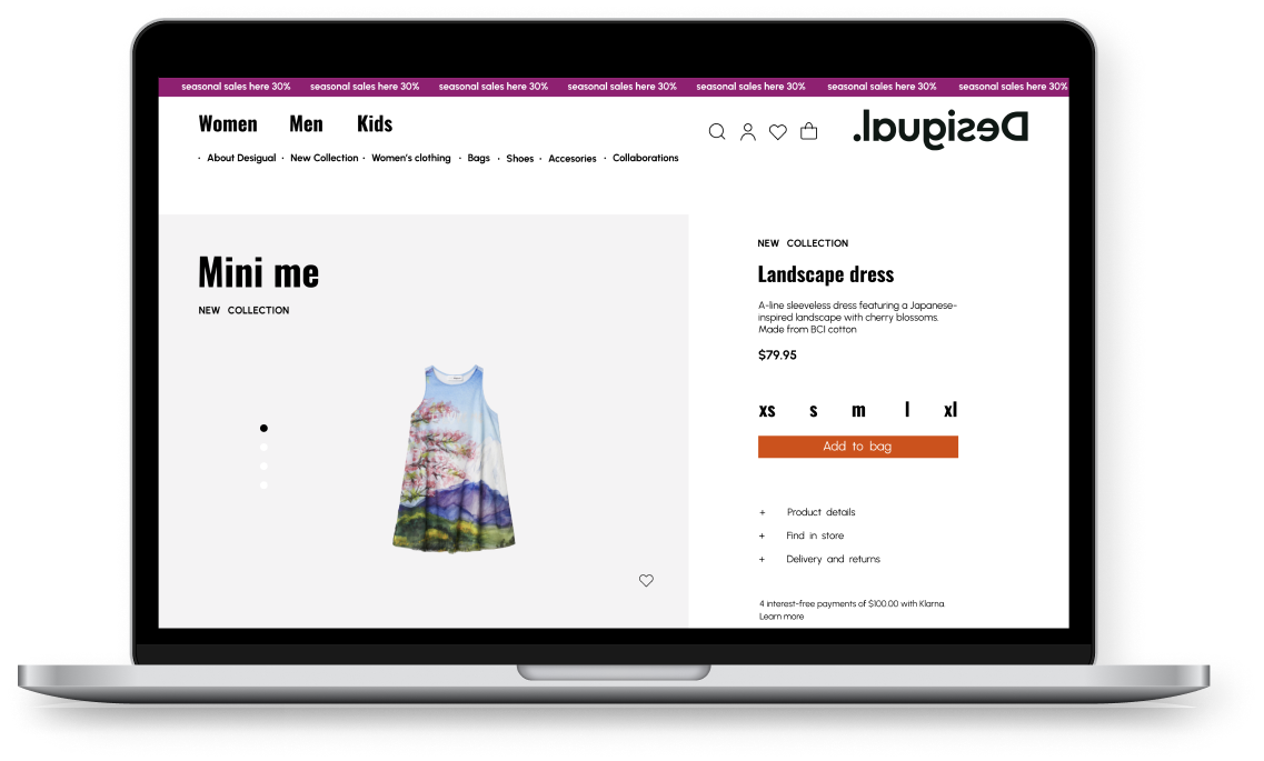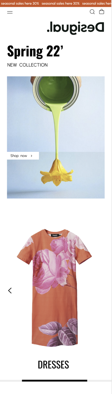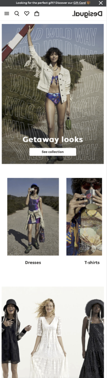 Desigual is a Spanish fashion brand. It’s mission is that people can dress differently, with garments that provoke positive emotions, based on a non-conformist and transgressive spirit, alien to trends and conventionality.The website falls short in representing the brand's unique and creative identity. A significant problem stems from the inconsistent aesthetic across the site and its generic appearance.