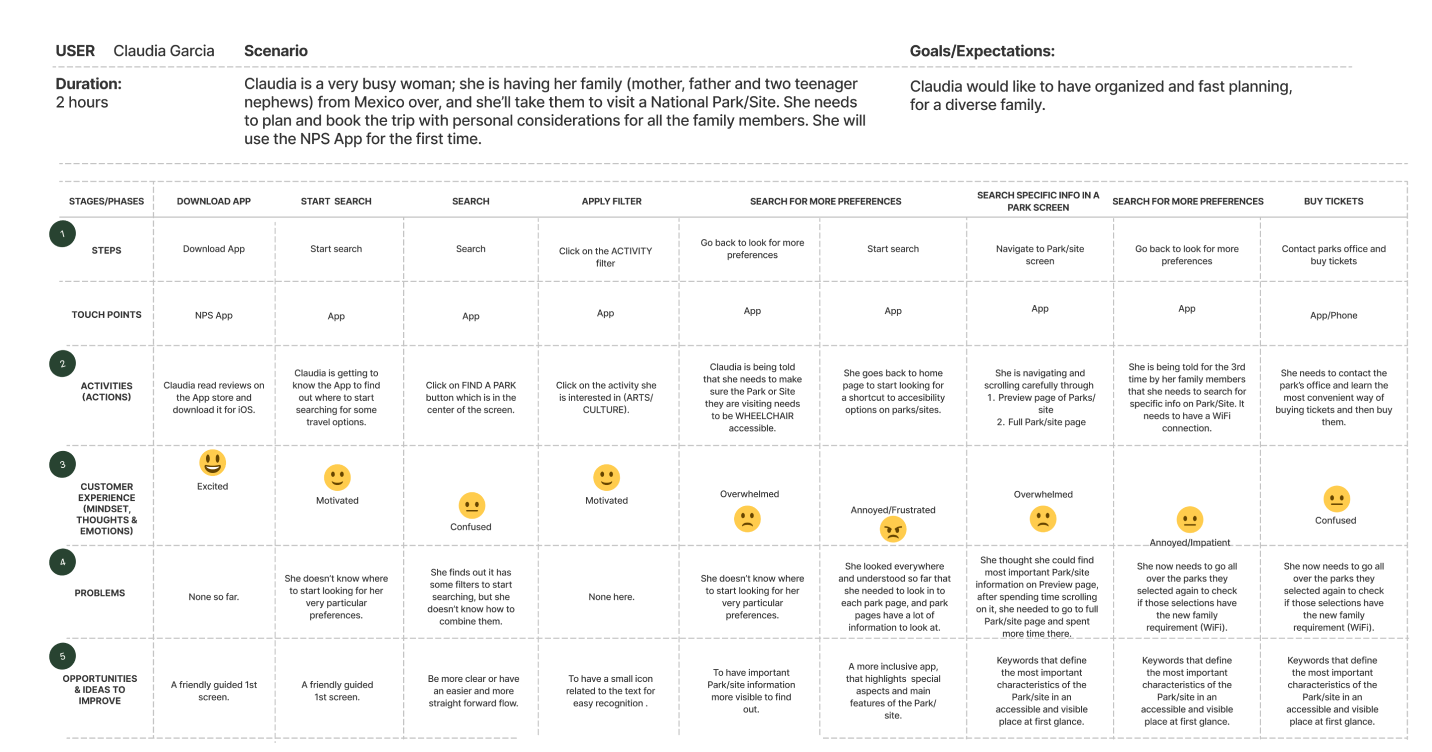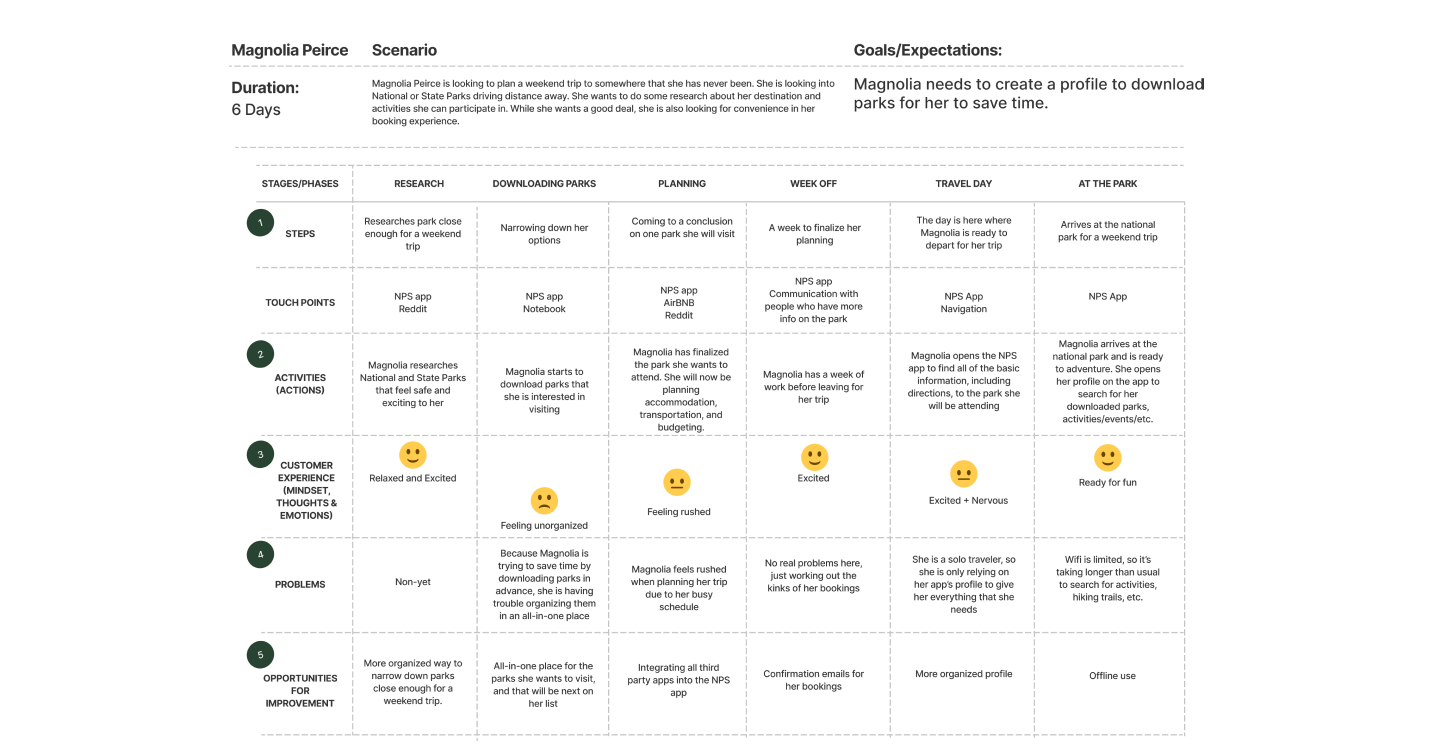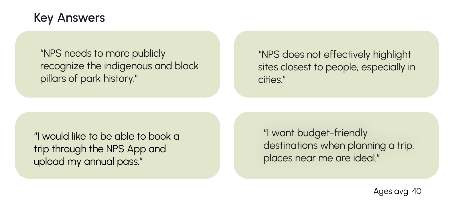 We conducted a survey among regular National Park visitors and those currently planning trips to National Parks to identify challenges, frustrations, requirements, and preferences regarding the National Park Service app. The goal is to improve their trip planning experience and tackle specific issues highlighted through their feedback.