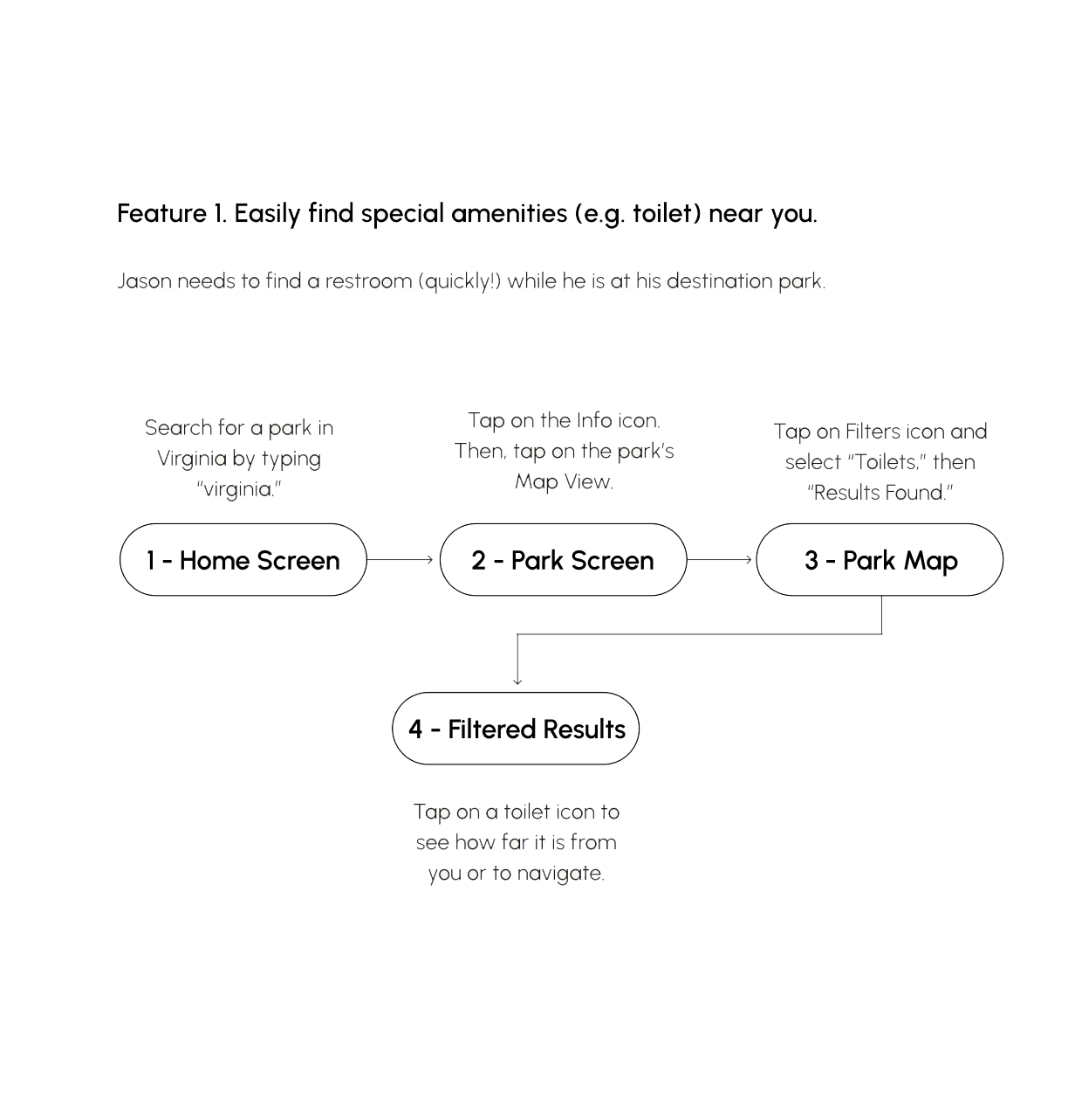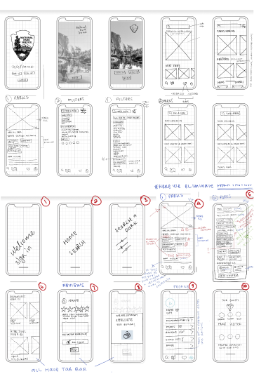 Rethink the information architecture of the NPS App for a faster, easier local search experience. Unify disconnected sections of the app with a persistent, all-encompassing tab bar. Allow for a more personal and customizable user experience to encourage exploration. Connect users to each other for a more informed and less isolating park going experience.