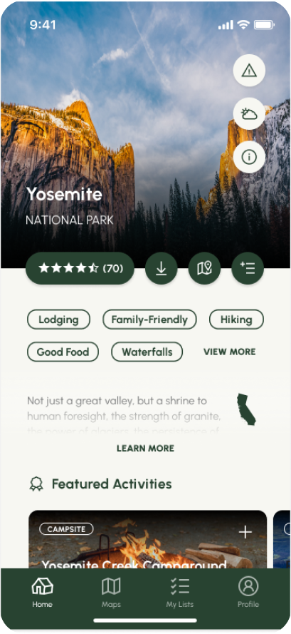 NPS seeks to preserve natural and cultural resources across the United States to benefit and educate visitors. In 2021: NPS launches its official local search app, but user encounter that, information is hidden beneath multiple layers. Essential details require extensive scrolling. Furthermore, there is no profile feature to synchronize preferences across devices or personalize the app for individual users.